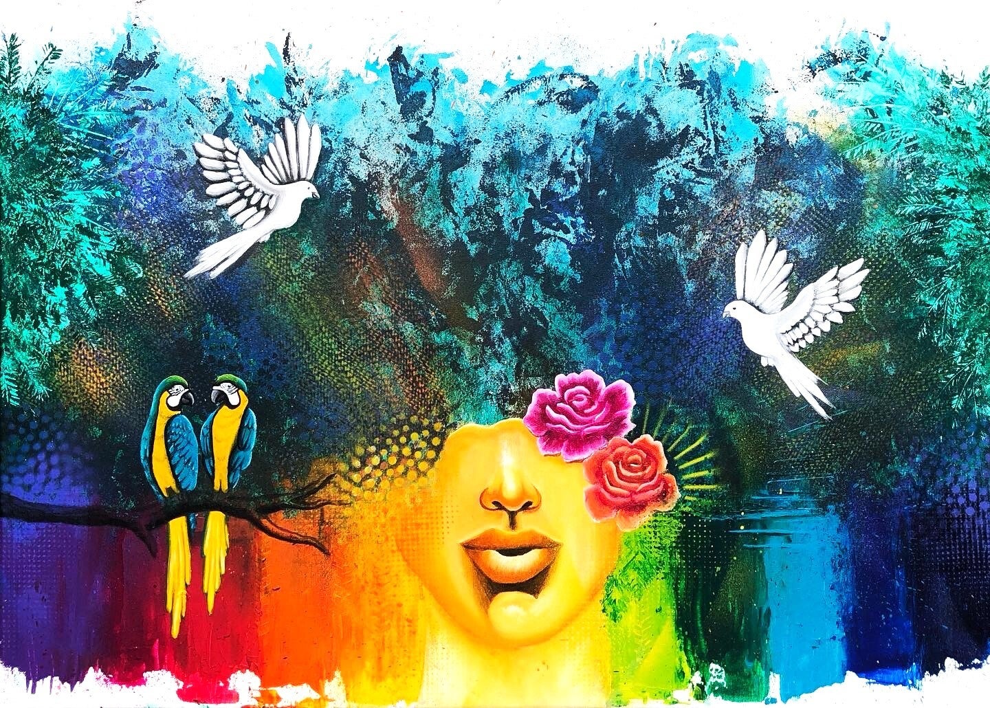 Durant son séjour en Asie, elle réalise une série de peintures appliquant les techniques apprises et explorant dans un style surréaliste le thème de la Femme et de la Nature. Peintures disponibles en impressions.