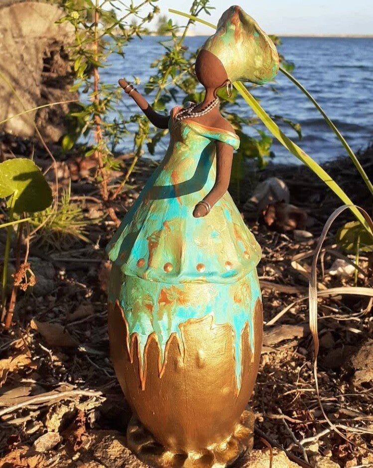 Ces sculptures ont une mission : embellir et irradier de leur présence les espaces où elles sont exposées. Que ce soit dans votre salon, bureau ou jardin d'hiver, elles apportent une touche de vie et d'originalité. Disponibles en tailles variées, adaptées à la forme unique de chaque calebasse, elles s'intègrent parfaitement à tout environnement.